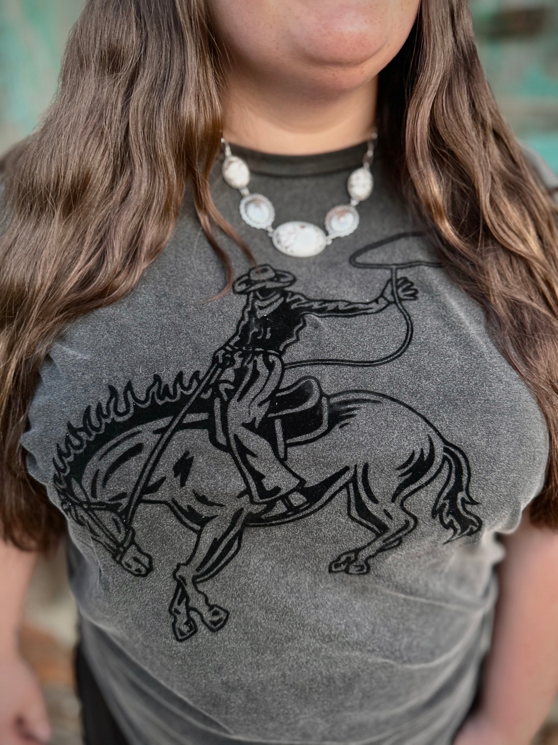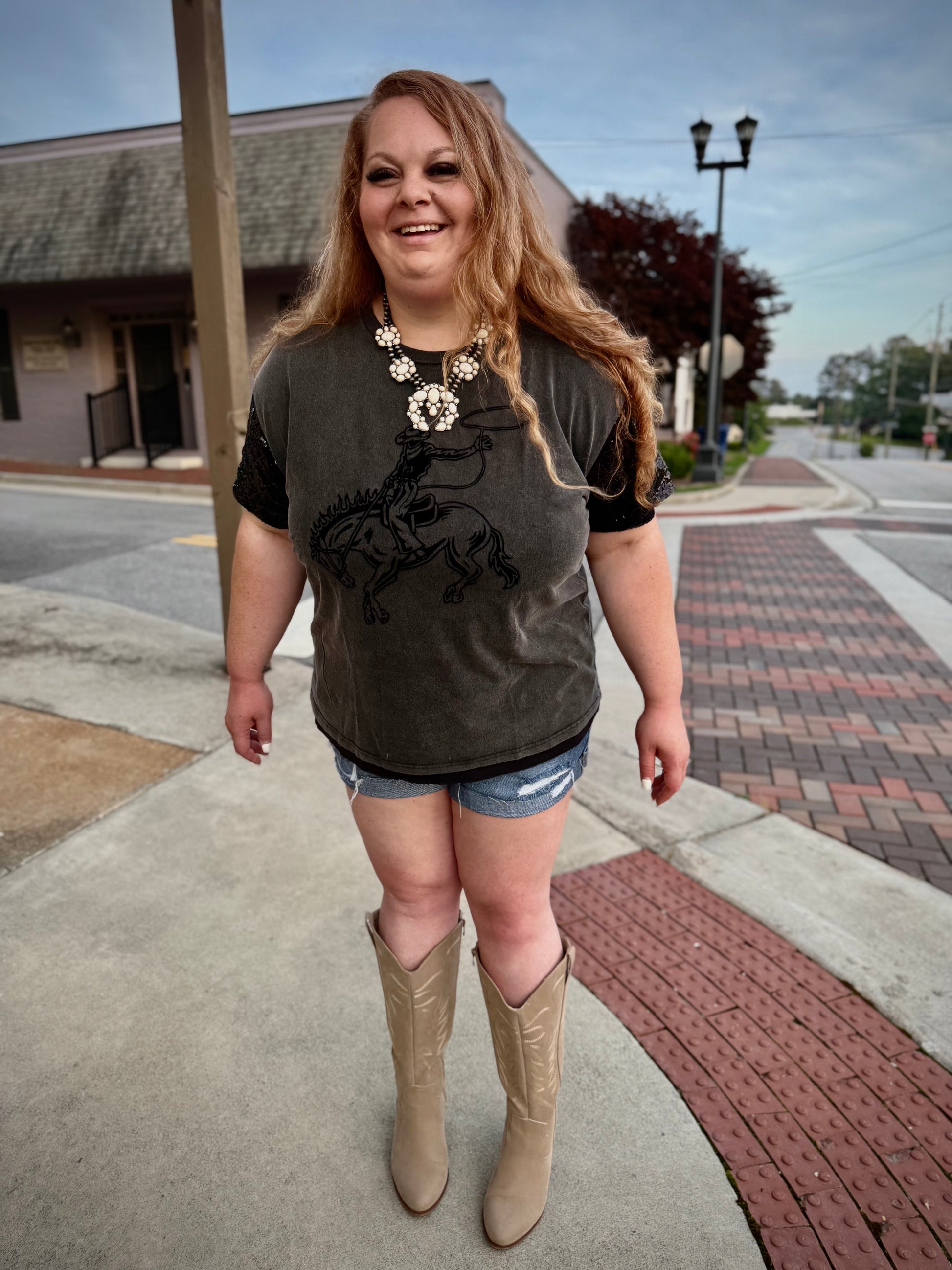 Plus Size Cowboy Sequins Flocking Sleeve Tee
