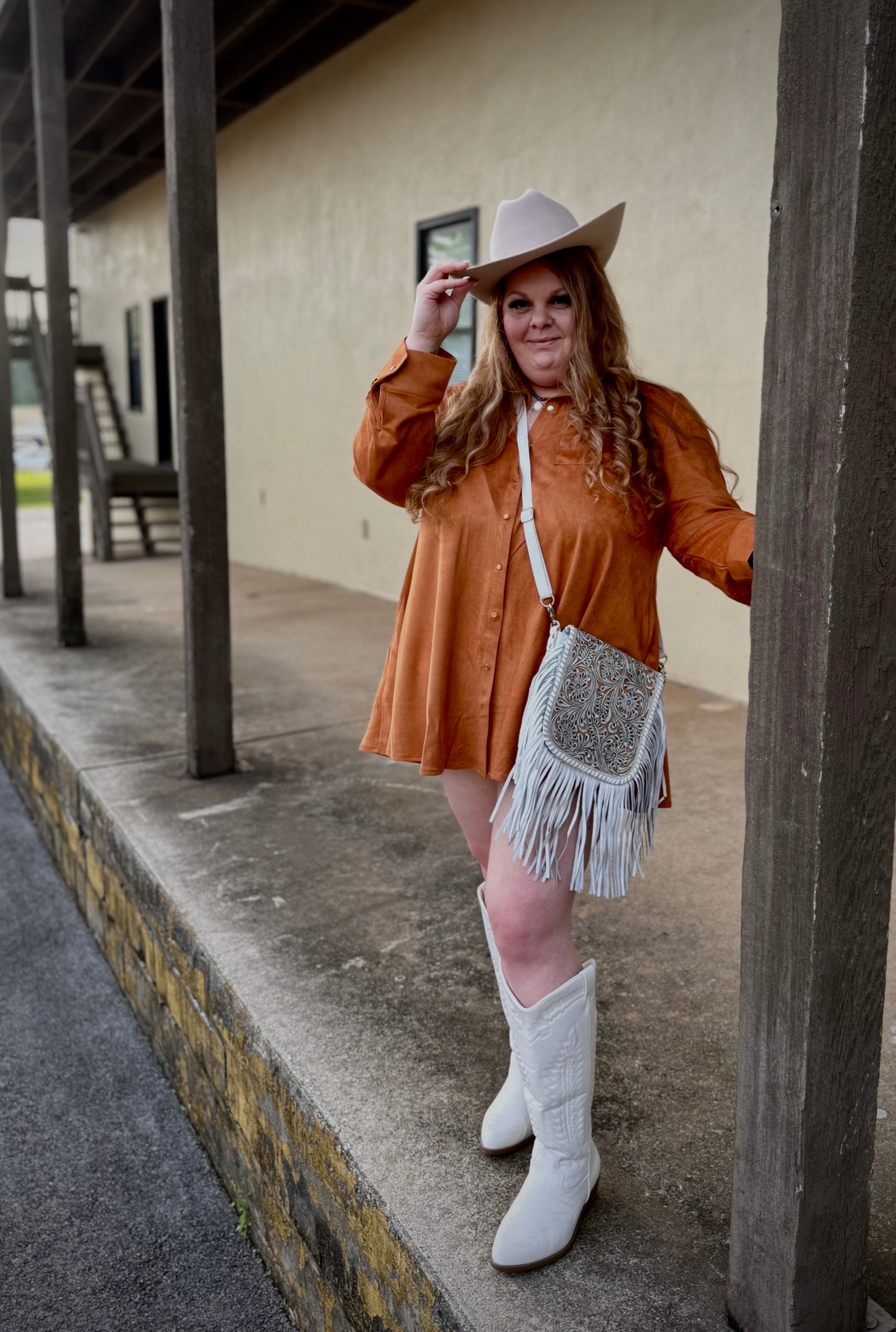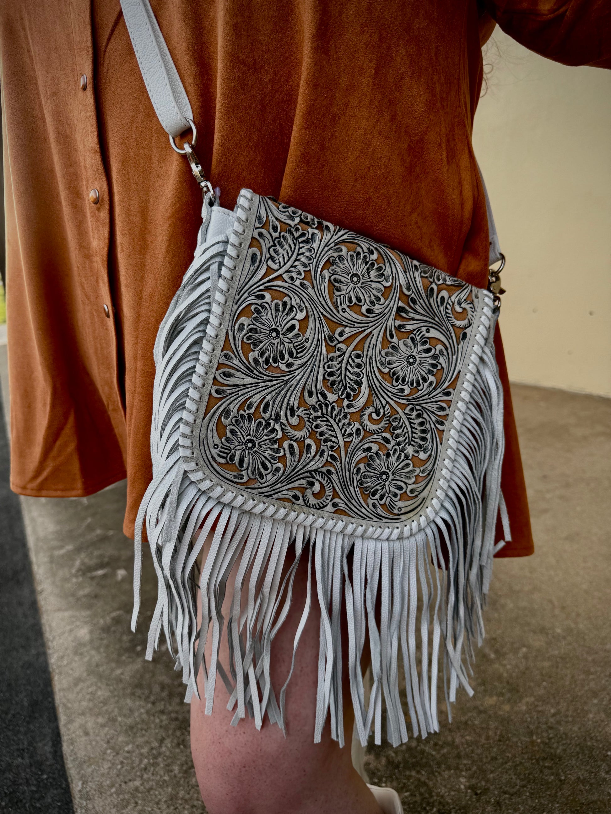 Western Leather Cowgirl Crossbody Messenger Fringe Bag.