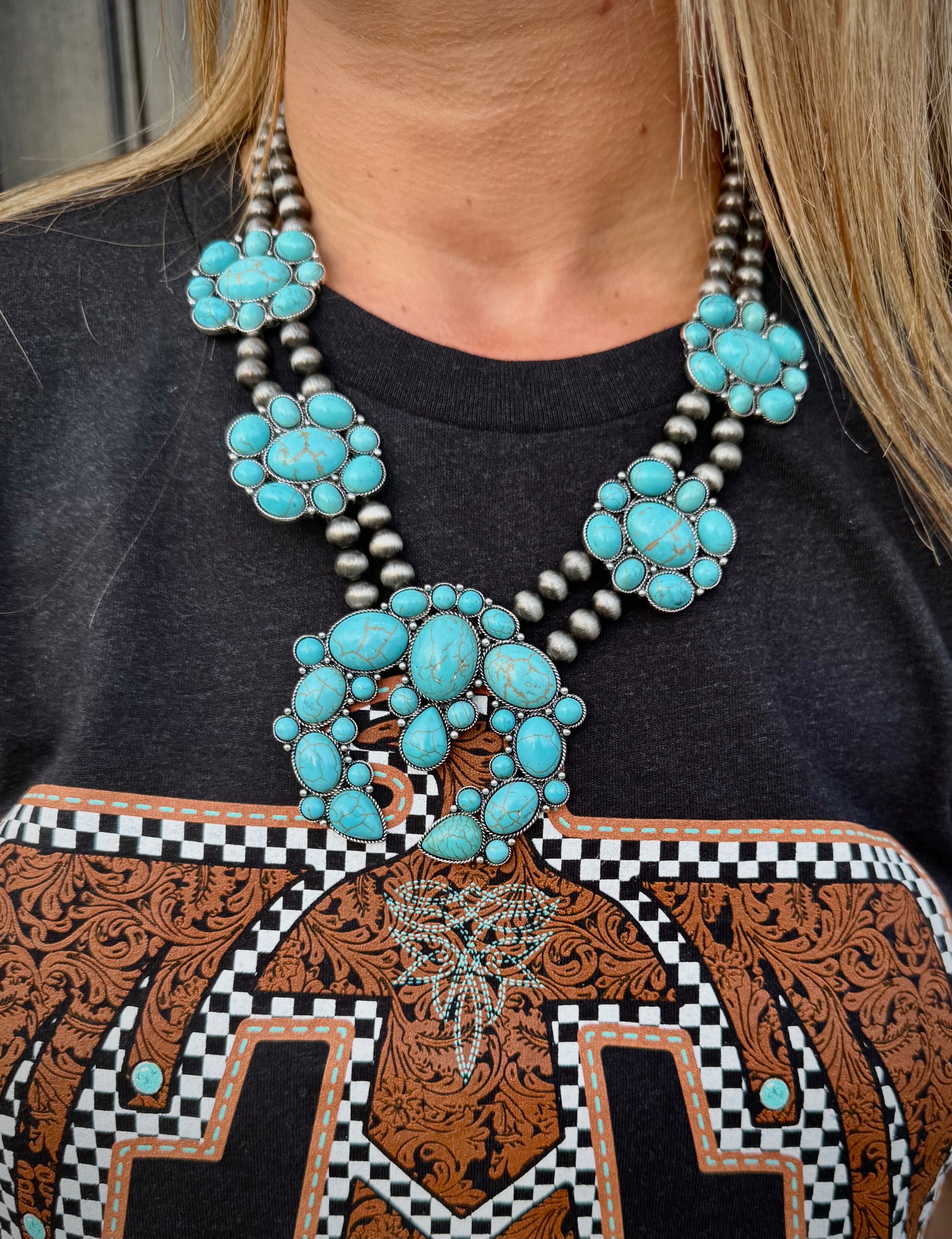 The Maya Western Chunky Squash Blossom Necklace - Turquoise