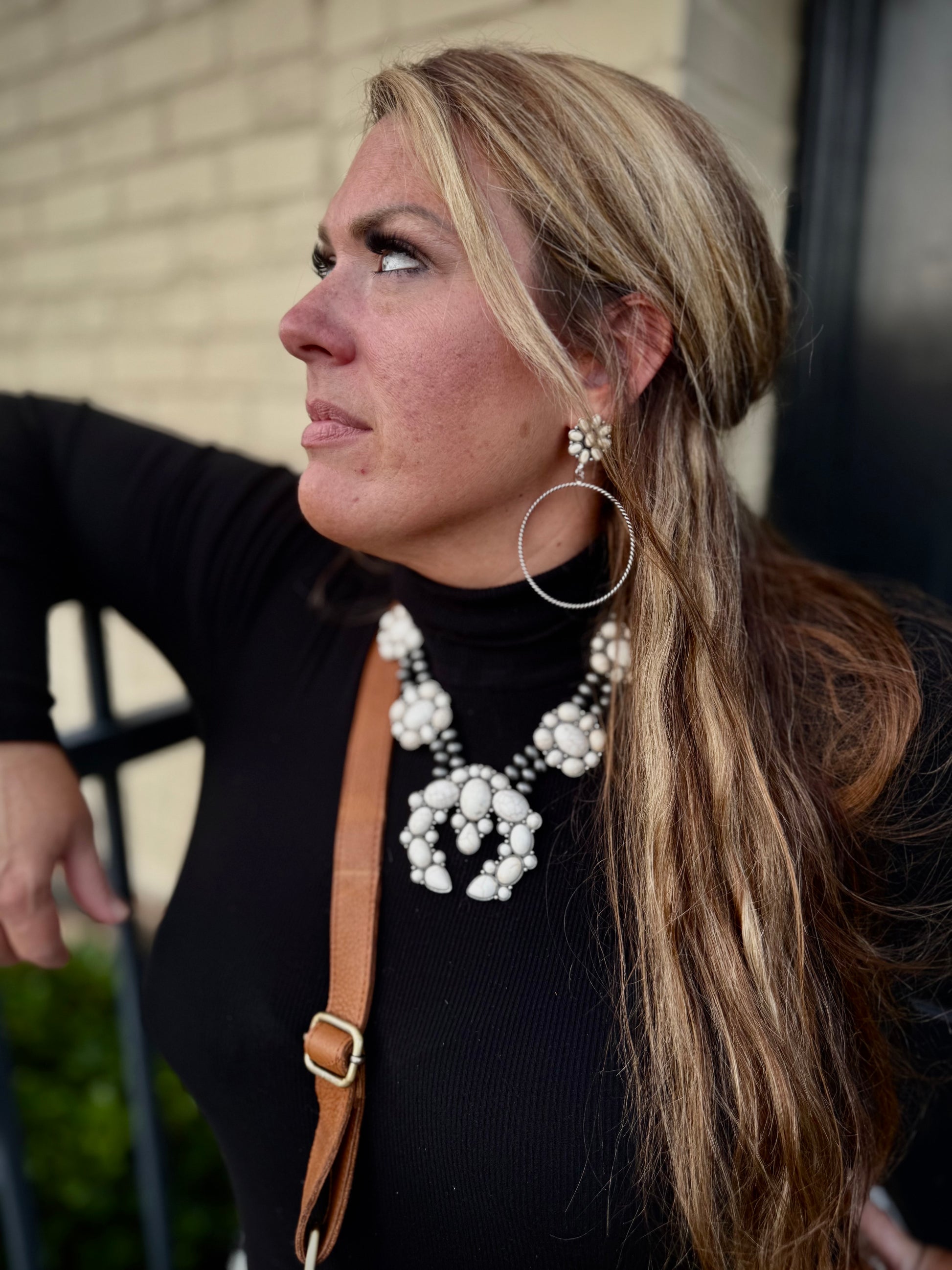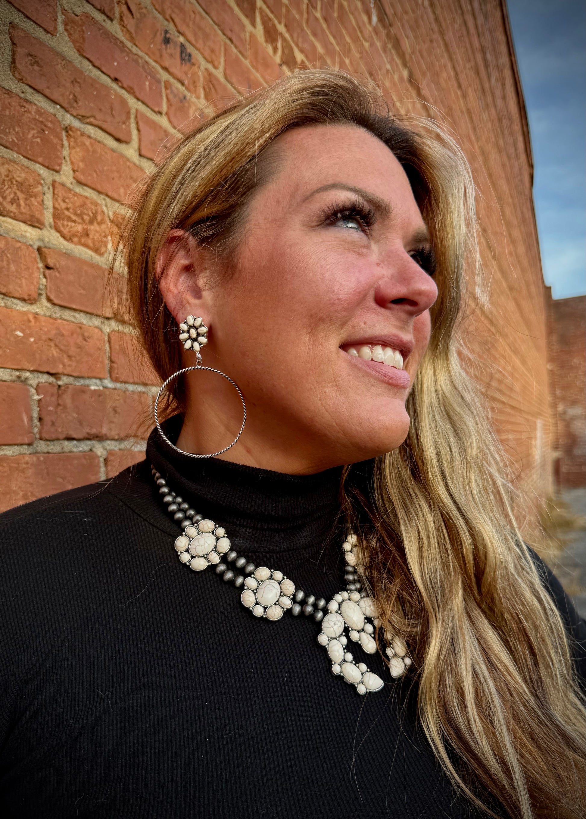 Western Flower Stone Hoop Earrings - Post back and lightweight